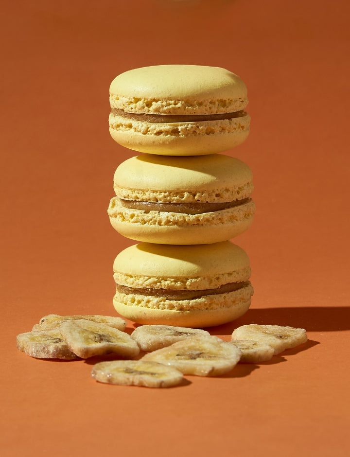 Experience the perfect harmony of flavours with our limited-edition Banana Miso Caramel macaron.