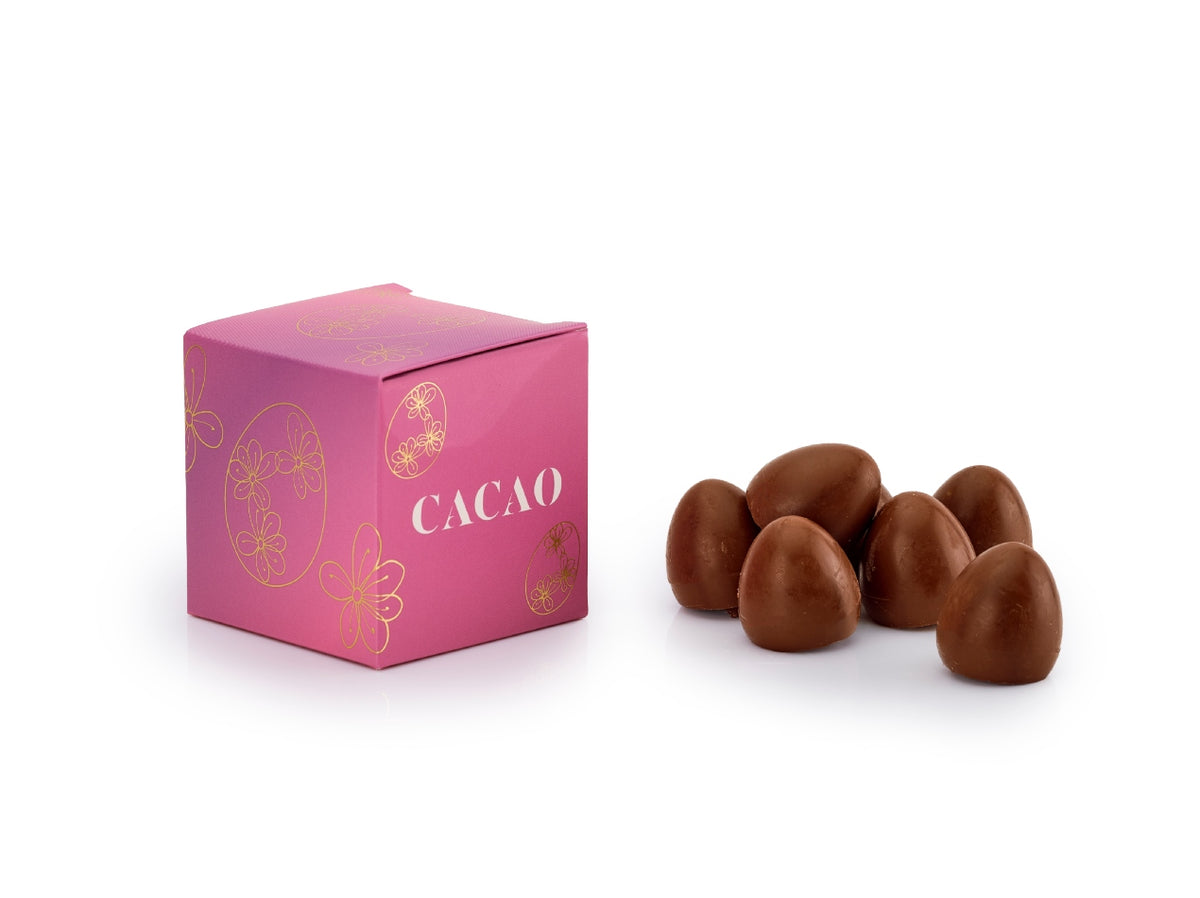 Crafted using premium milk chocolate and thoughtfully balanced for richness and texture, these delightful eggs are perfect for Easter hunts, sharing at the table or enjoying one by one. Presented in CACAO’s soft pink Easter box adorned with delicate gold floral illustrations, this seven-piece pack feels just as special to give as it is to find — a joyful nod to Easter tradition, reimagined the CACAO way.