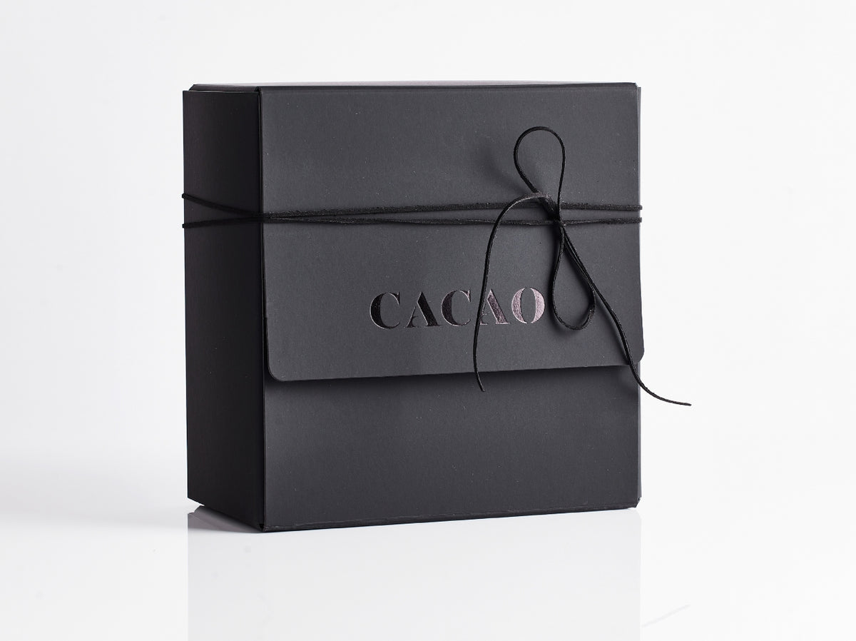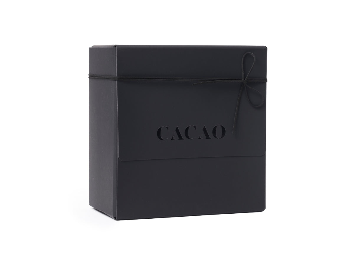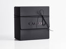 Our signature black velvet touch square hamper box complete with an elegant leather tie is the perfect way to present your purchased items.