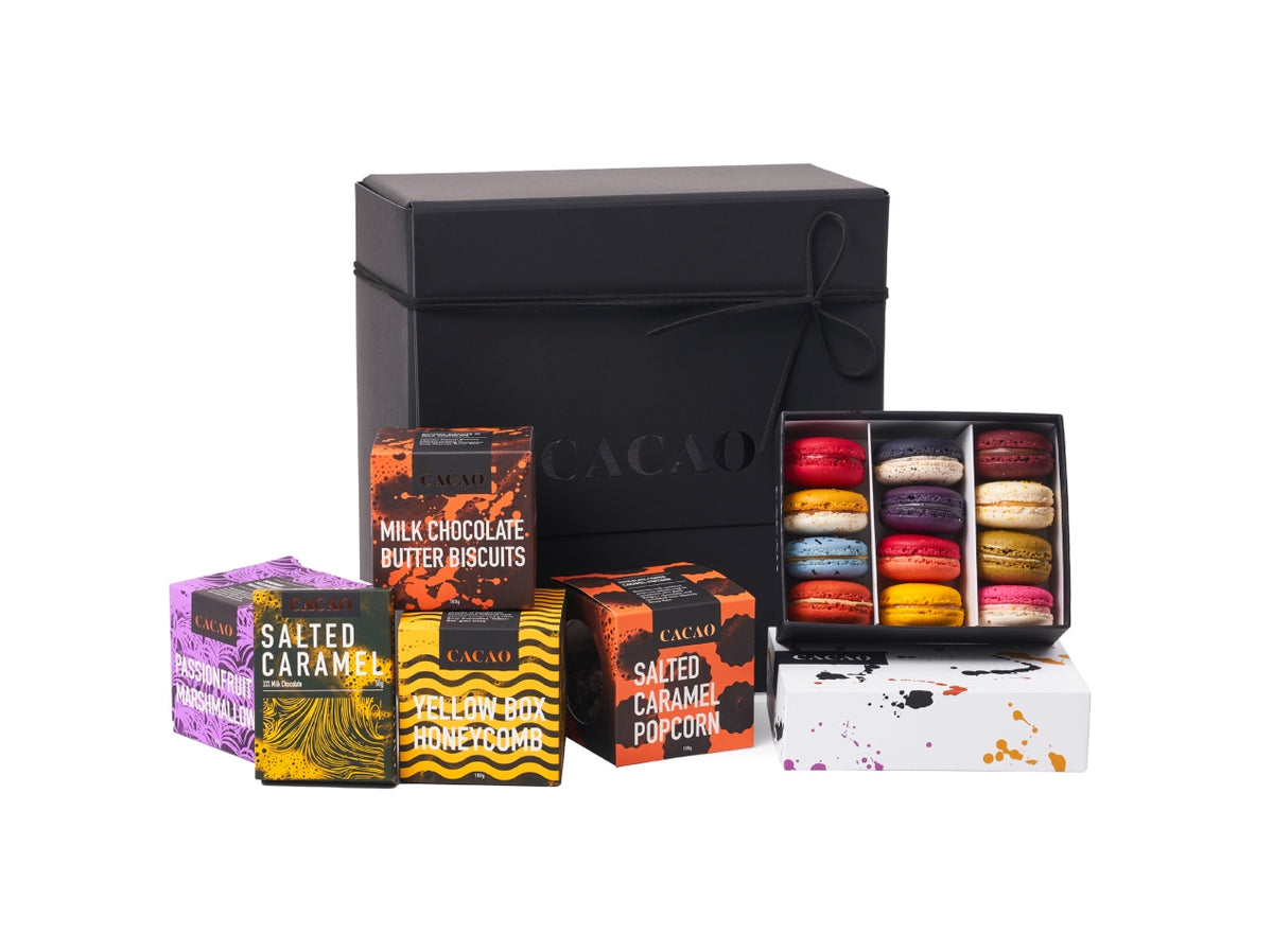 Macarons should be stored in a refrigerator whilst chocolate should be stored in a cool dry place. For further storage information, click here