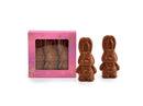 A cute trio of chocolate bunnies, made for Easter and crafted from premium milk chocolate. Finished with charming details, including a playful bow tie, each bunny stands 11.5cm tall and is designed to bring a little extra joy to the Easter table or hunt.