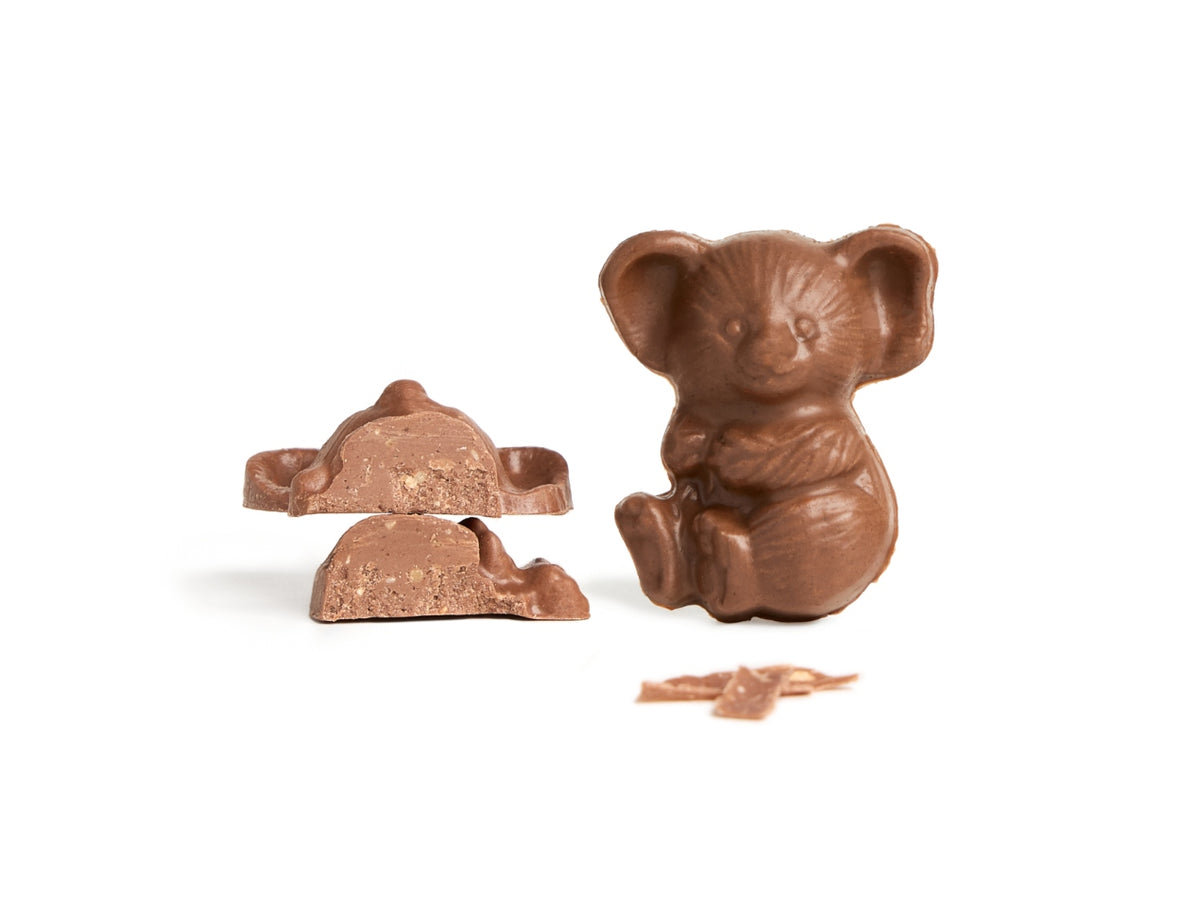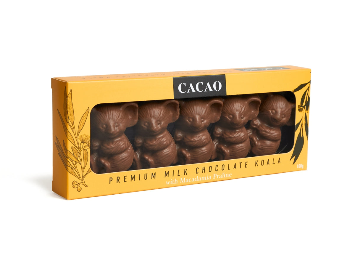 Milk Chocolate 33% cocoa minimum (sugar, cocoa butter, whole milk powder, cocoa mass, emulsifier: soya lecithin, natural vanilla flavour) (Milk, Soya), Macadamias (Macadamia), Castor Sugar.